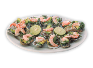 6 ostiones, 6 camarones (cerveza de 355 ml o 325 ml) – $150