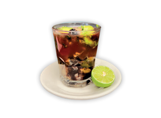 Agua mineral o sangría en vaso escarchado con sal y limón – $48